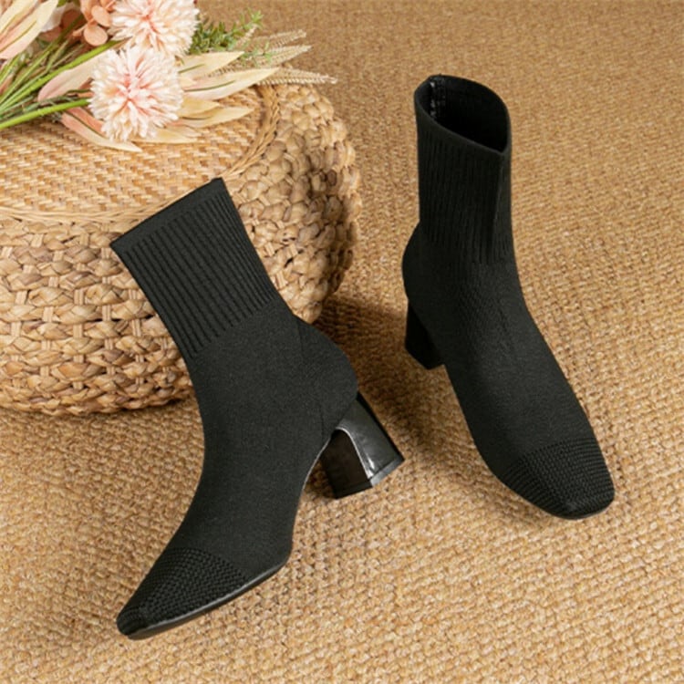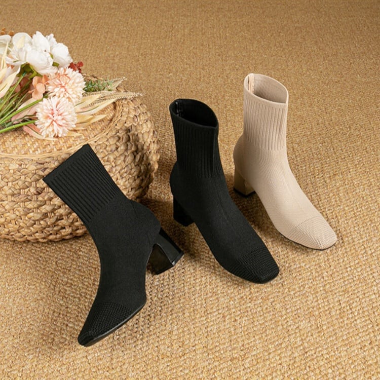 ■商品:ショートブーツ ソックスブーツ ニット素材 レディース 7色 22-26㎝ ヒール5.5㎝ 痛くない スクエアトゥ フォーマル 韓国 ファッション コーデ おすすめ カジュアル きれいめ 大きいサイズ 人気 ゆったり 20代 30代 40代 50代