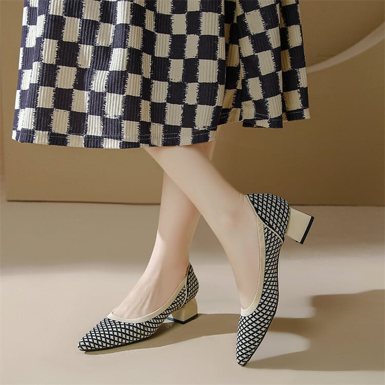 新登場!普段使いにぴったりなニット素材のチャンキーヒールパンプスが、あなたの足元をスタイリッシュに演出します。柔らかなニット素材が足に優しくフィットしつつ、ヒール3.5㎝の設計により、長時間の歩行でも疲れにくい設計となっています。ポインテッドトゥデザインで、フォーマルな場面でも活躍します!