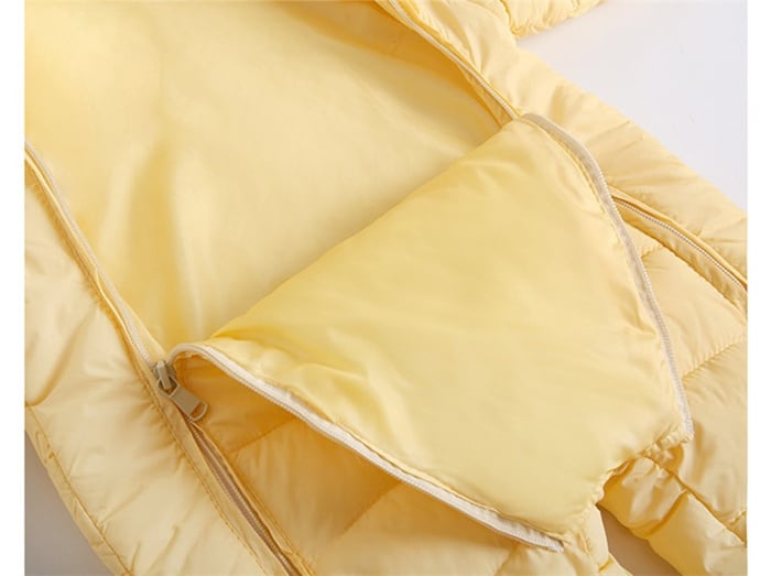 新登場!寒い秋冬にぴったりな中綿入りジャンプスーツが、お子様の温かさを守ります。もこもこの可愛らしいデザインで、外出時も安心してお使いいただけるアイテムです!