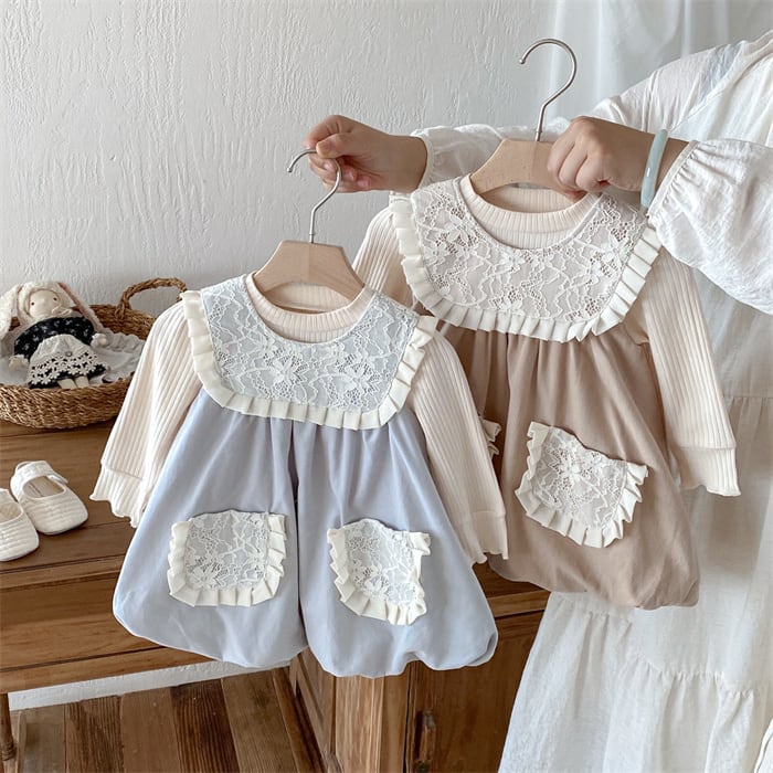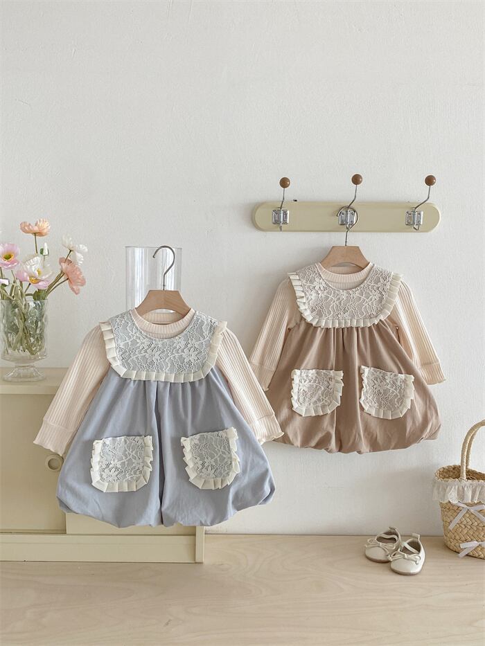 ベビー服 ベビードレス ワンピース カットソー 2点セット 女の子 2色 73-110㎝ 子供服 春秋 かわいい 子供ドレス 25zm1798