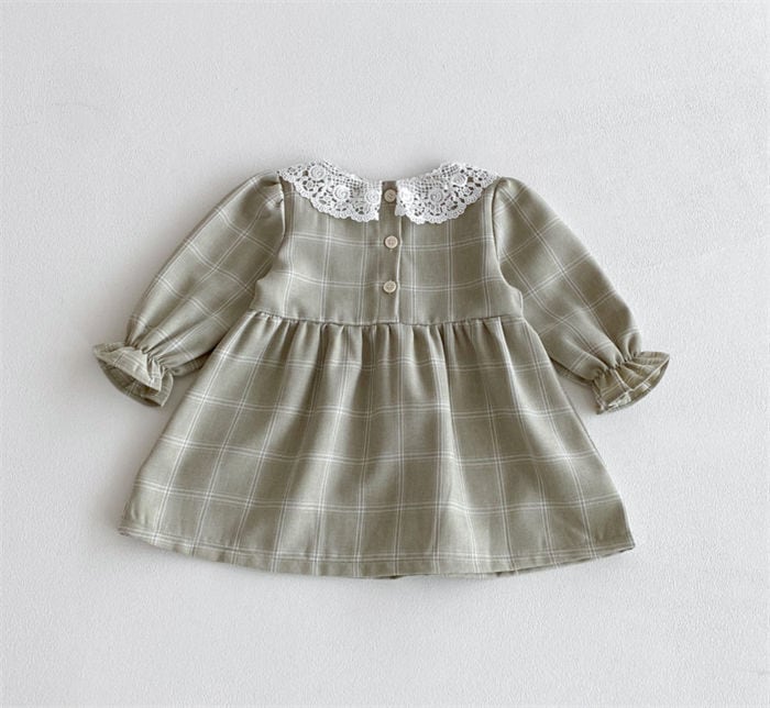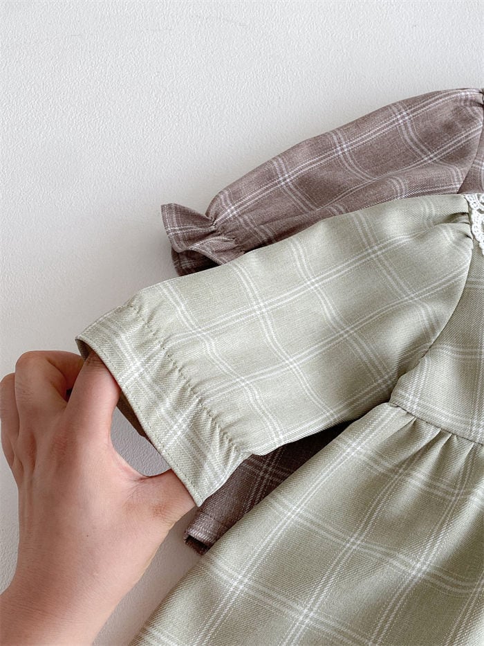 ベビー服 ワンピース 女の子 子供服 2色 73-110㎝ チェック柄 ベビードレス プリンセス風 可愛い ベビーワンピース 25zm1828