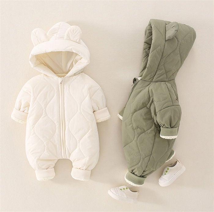 新登場!寒い冬にぴったりな可愛いジャンプスーツが、あなたの赤ちゃんを暖かく包み込みます。男の子、女の子両方に似合うデザインで、お出かけにもぴったりの一着です!