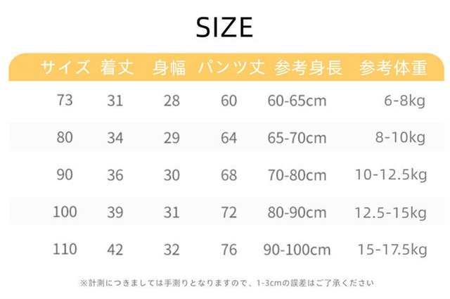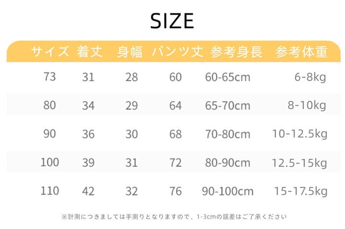 ★特徴:73㎝から110㎝までの幅広いサイズ展開があり、可愛いデザインでお子様の魅力を引き出します。動きやすく、快適な着心地を提供するロンパースが含まれており、カジュアルコーデもおしゃれに決まります。普段使いから特別なシーンまで、ワードローブに欠かせないアイテムです。
