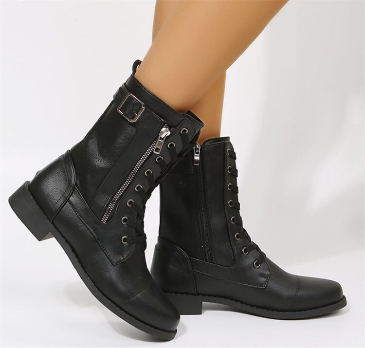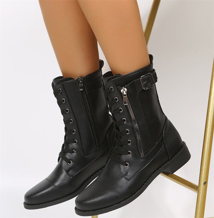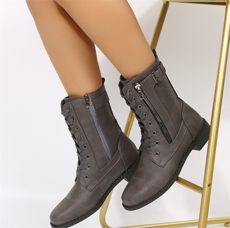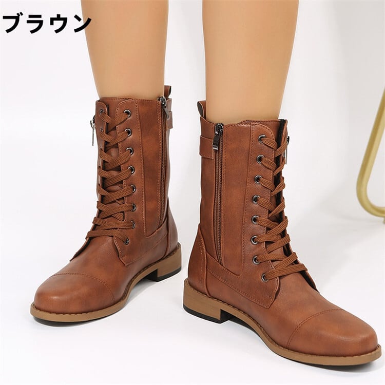 ★特徴:サイドファスナー付きで脱ぎ履きが簡単。しっかりとした作りが特徴のブーツは、カジュアルなスタイルにも、ちょっとしたお出かけにもぴったり!レースアップデザインが足元を引き締め、こなれ感を演出します。長時間の着用でも快適さを保ち、デイリーユースから特別な日のコーディネートまで、様々なシーンで活躍すること間違いなしです!