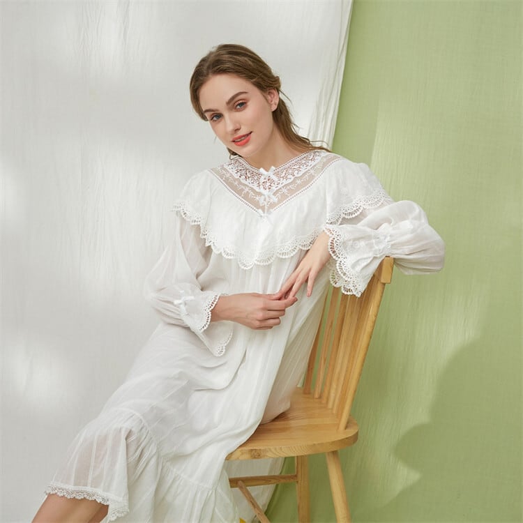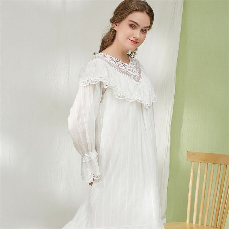 ■商品:ネグリジェ ワンピース ロング丈 レディース S-XL ルームウェア レース Vネック フリル付き かわいい パジャマ  韓国 ファッション コーデ おすすめ カジュアル きれいめ 大きいサイズ 人気 ゆったり 20代 30代 40代 50代