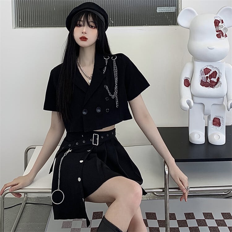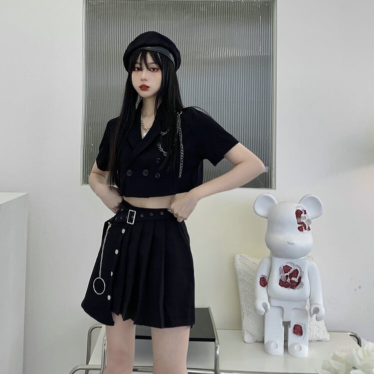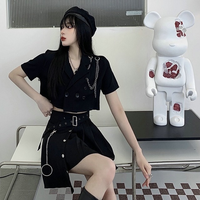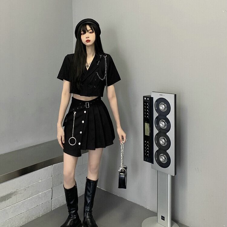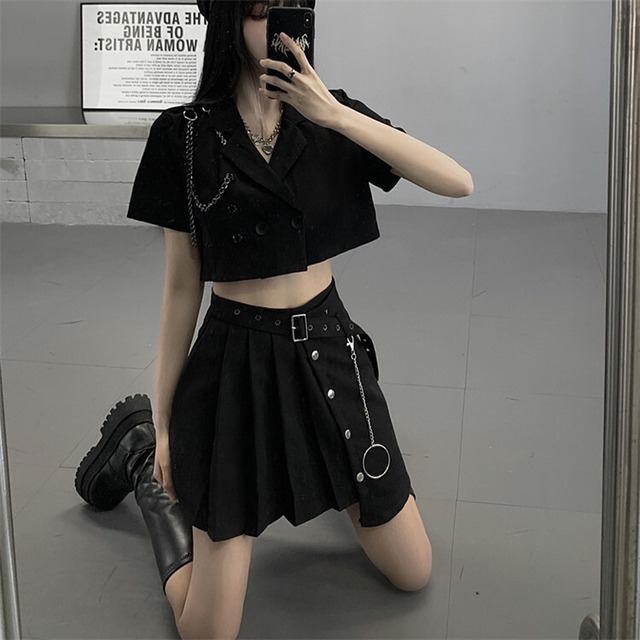 セットアップ 上下セット レディース S-XL ジャケット プリーツスカート 韓国 無地 へそ出し セクシー イベント衣装 25zm1869