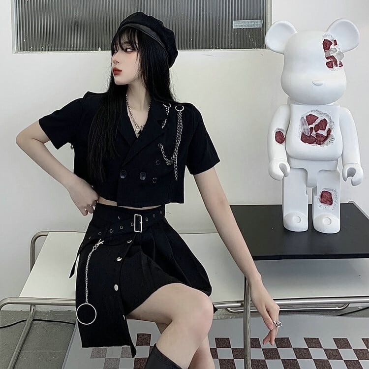 ★特徴:この上下セットは、シンプルな無地デザインとへそ出しスタイルで、一味違った魅力を引き立てます。ジャケットとプリーツスカートの組み合わせが、洗練された雰囲気を演出します。韓国ファッションを取り入れたこのアイテムで、周囲の視線を集めること間違いなしです!
