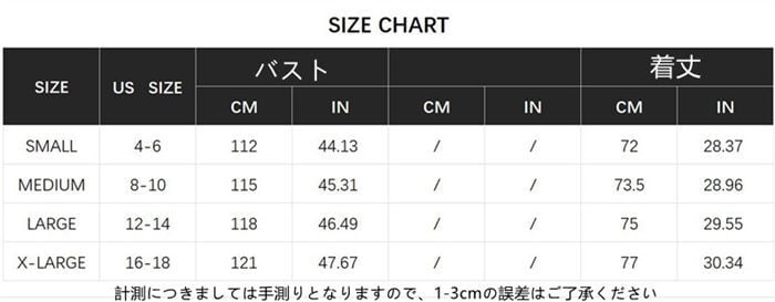 サイズ表の実寸法は商品によって1-3cm程度の誤差がある場合がございます。
