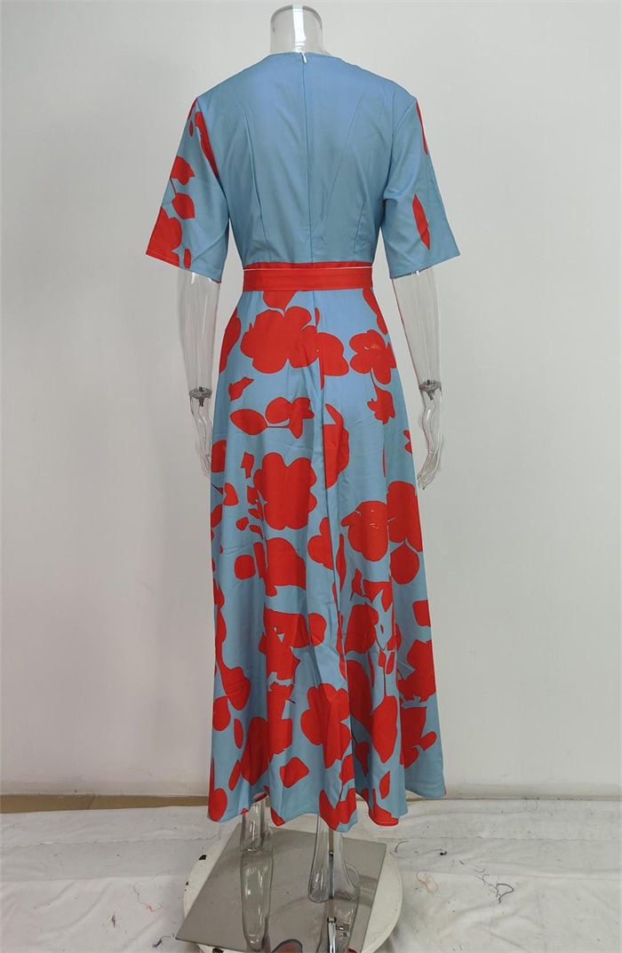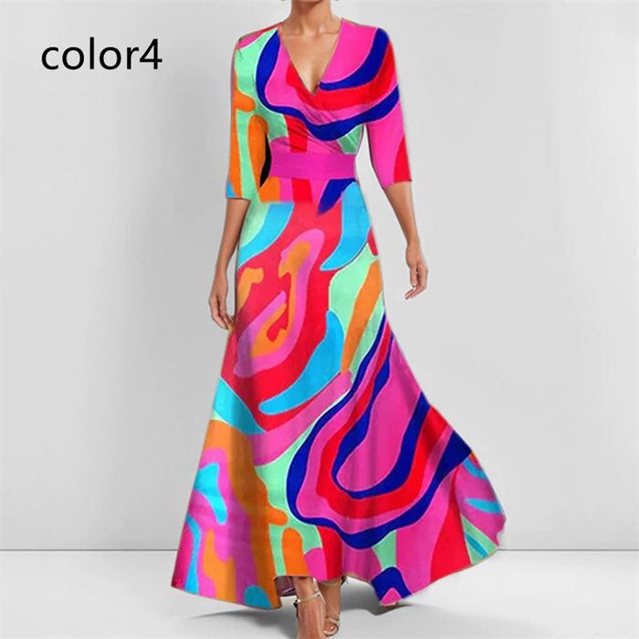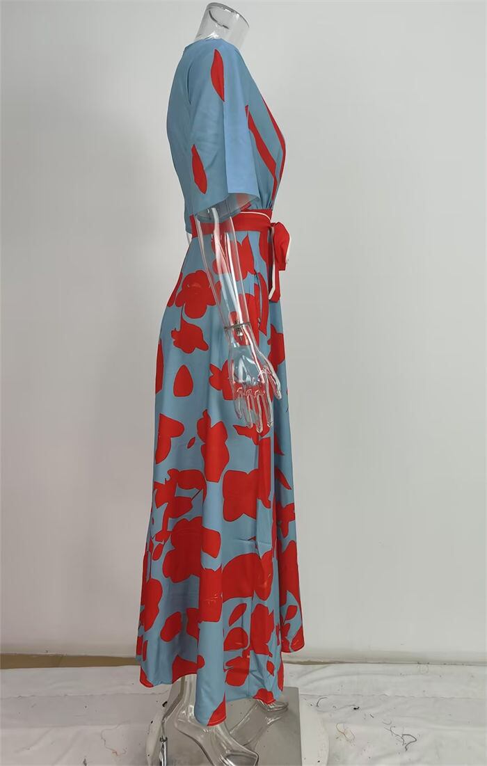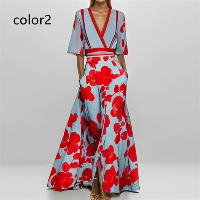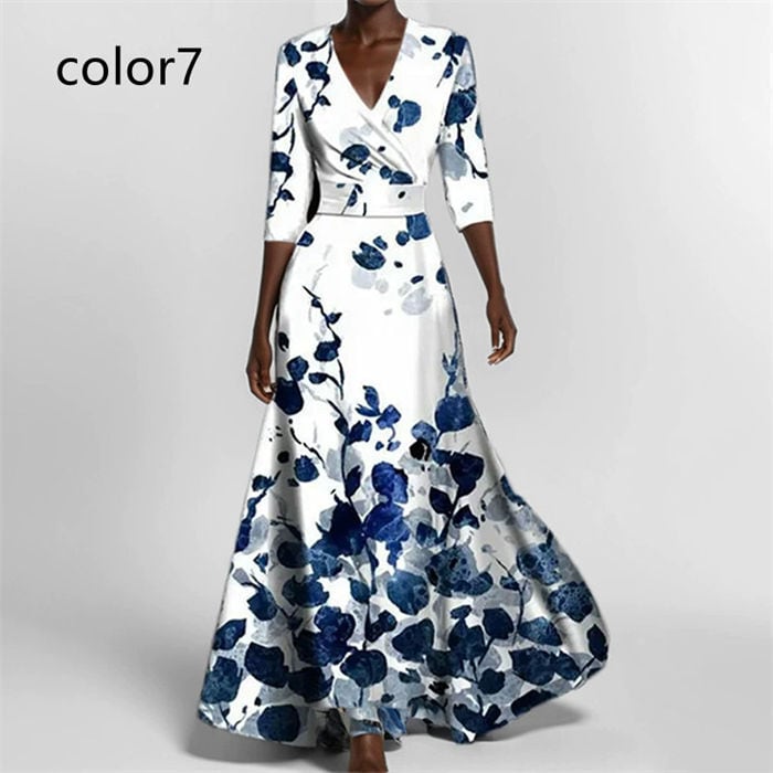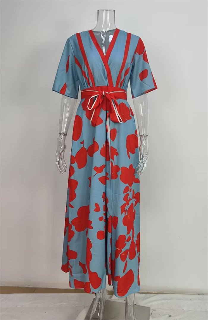 ワンピース 半袖 パーティードレス レディース 7色 S-3XL Vネック 花柄 マキシワンピース 半袖 サマードレス 25zm1877