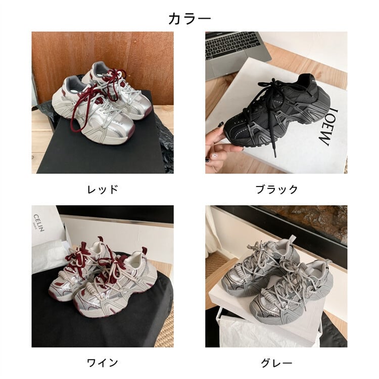 厚底スニーカー ダッドスニーカー レディース 4色 22.5-25㎝ ヒール6㎝ スニーカー 美脚 おしゃれ 韓国 25zm1890