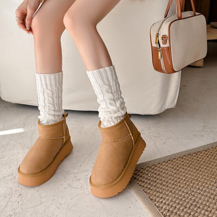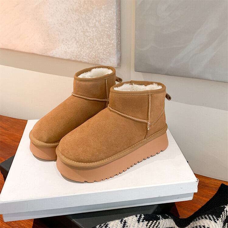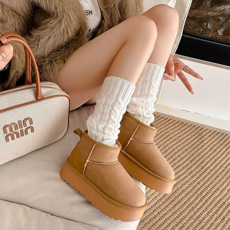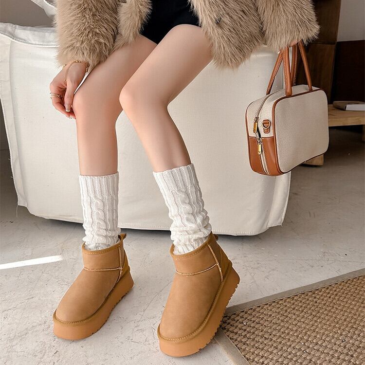 ムートンブーツ 厚底ブーツ レディース 2type 22.5-25㎝ 厚底 ショートブーツ 防寒 スエード カジュアル 25zm1899