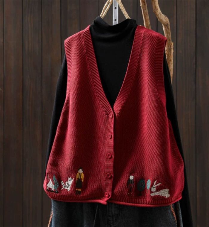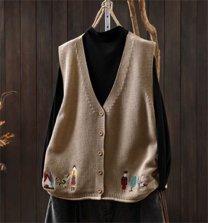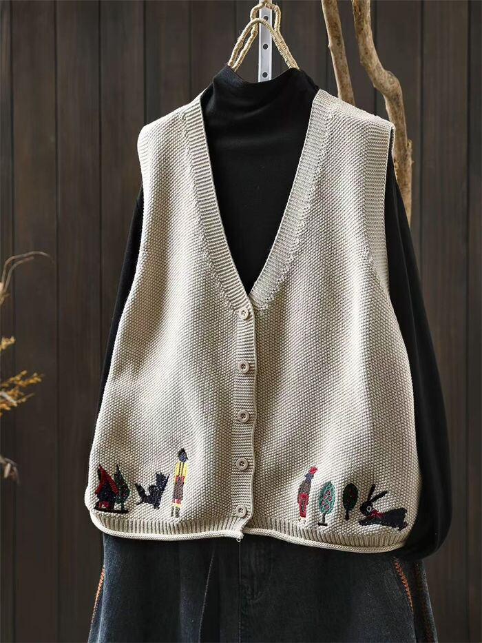 ニットベスト ニット ベスト レディース 7色 フリーサイズ カジュアル Vネック 刺繍 ゆったり 25zm1929