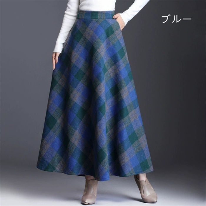 チェックスカート ロング丈 フレアスカート レディース 4色 S-3XL ロングスカート チェック柄 秋冬 Aライン 25zm1935
