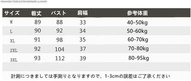 サイズ表の実寸法は商品によって1-3cm程度の誤差がある場合がございます。