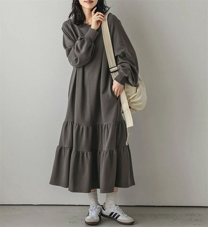 ■商品: ワンピース 長袖 ロング丈 レディース 4色 M-L マキシワンピース ゆったり 部屋着 かわいい 韓国 ファッション コーデ おすすめ カジュアル きれいめ 大きいサイズ 人気 ゆったり 20代 30代 40代 50代
