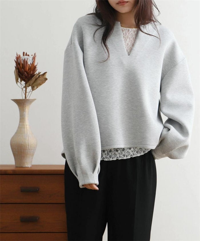 スウェット プルオーバー レディース 3色 フリーサイズ 無地 Vネック 長袖 ゆったり 大人 カジュアル 秋冬 25zm1961