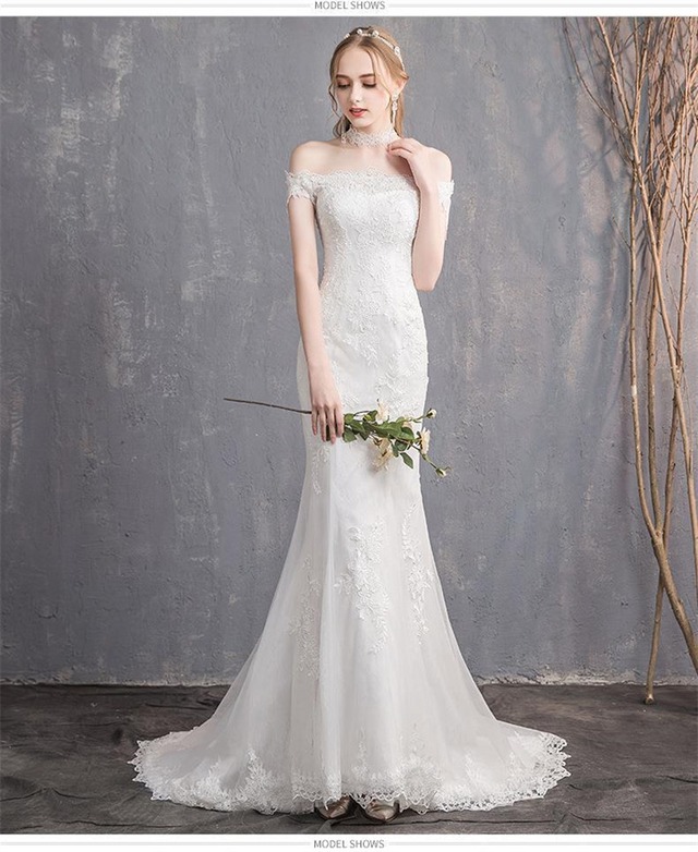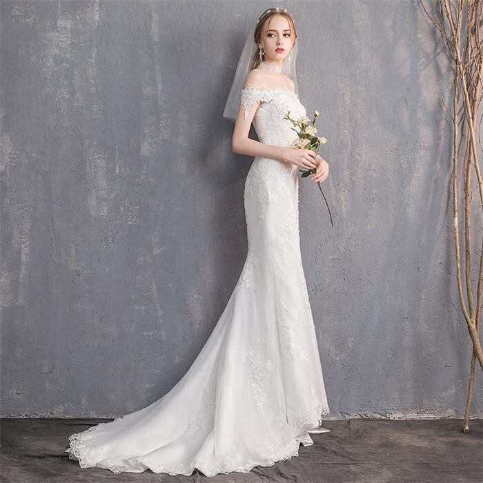 ウエディングドレス オフショルダー マーメイドライン レディース 白 XS-3XL ロングドレス 編み上げタイプ 結婚式 25zm1976