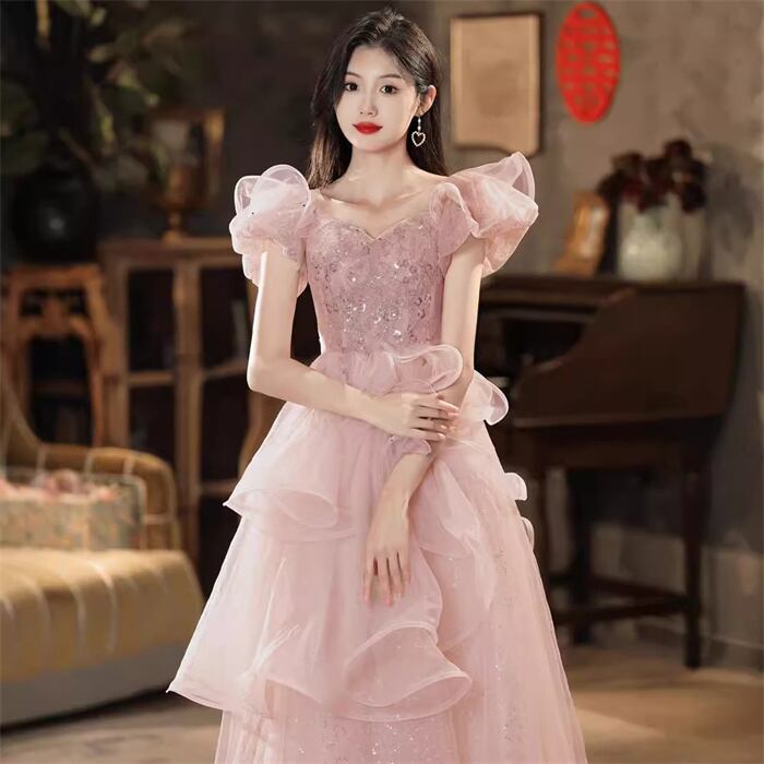 ■商品:パーティードレス ウエディングドレス レディース ピンク XS-2XL ロングドレス 結婚式 発表会 二次会ドレス 韓国 ファッション コーデ おすすめ カジュアル きれいめ 大きいサイズ 人気 ゆったり 20代 30代 40代 50代