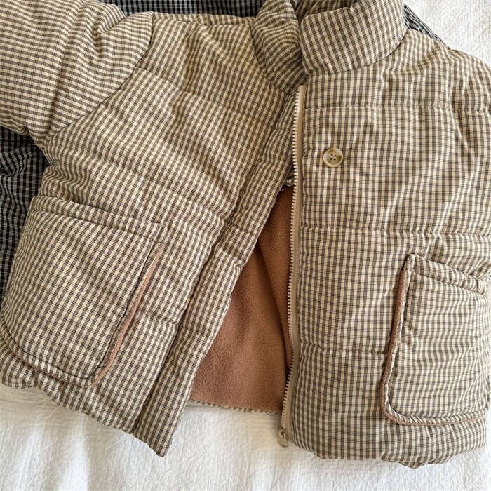 子供服 中綿ジャケット 男の子 女の子 ベビー 2色 80-150㎝ ギンガムチェック 厚手 秋冬 防寒 子供服 25zm2005