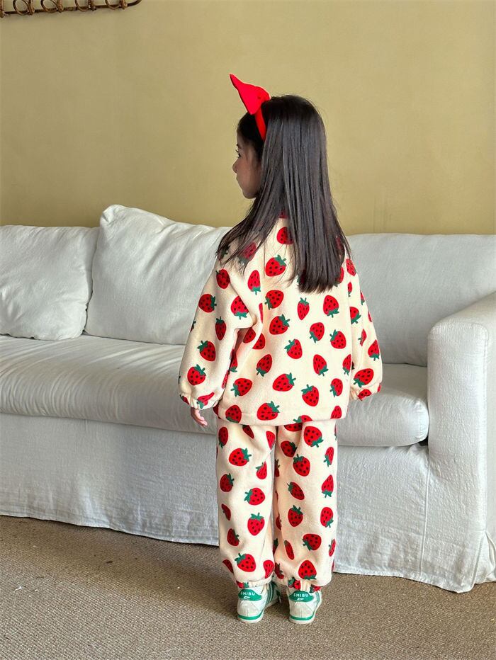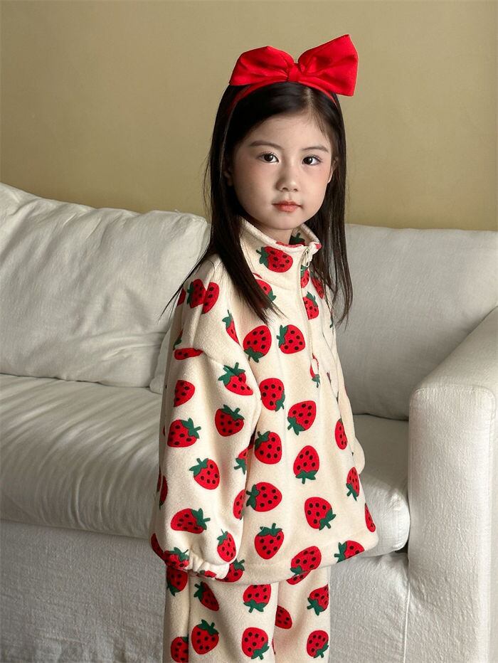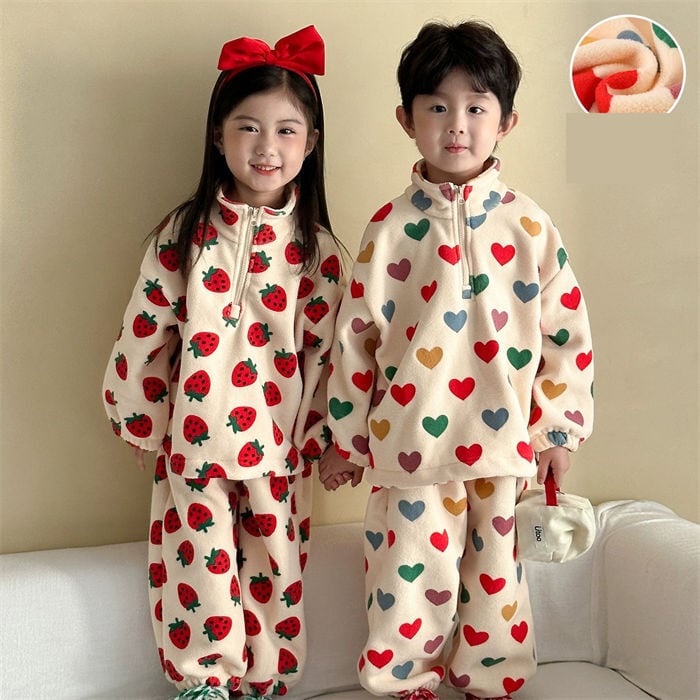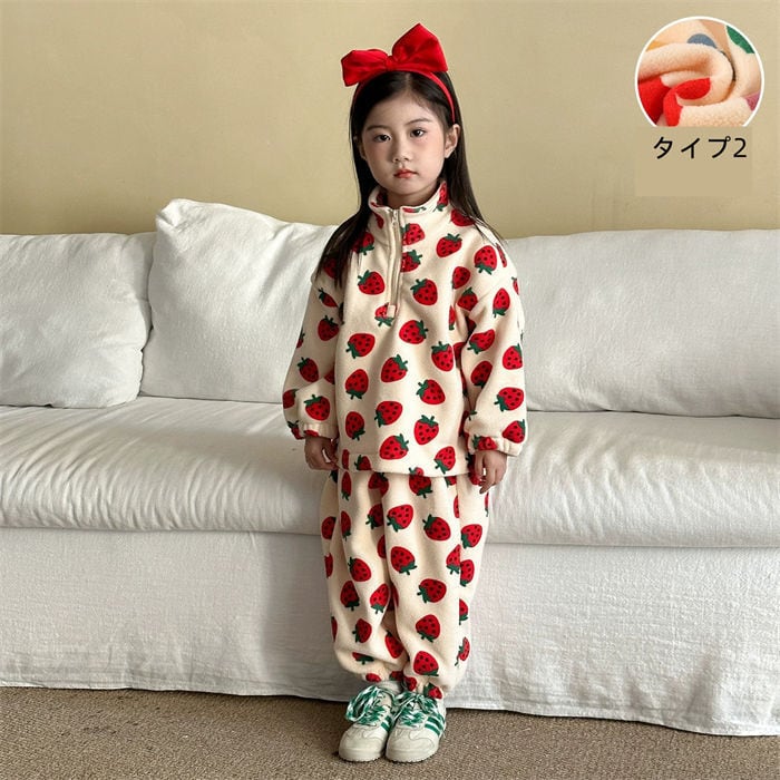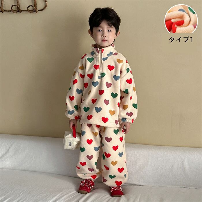 子供服 セットアップ パジャマ 男の子 女の子 ベビー 2色 80-150㎝ ドット柄 厚手 もこもこ 部屋着 秋冬 防寒 25zm2006