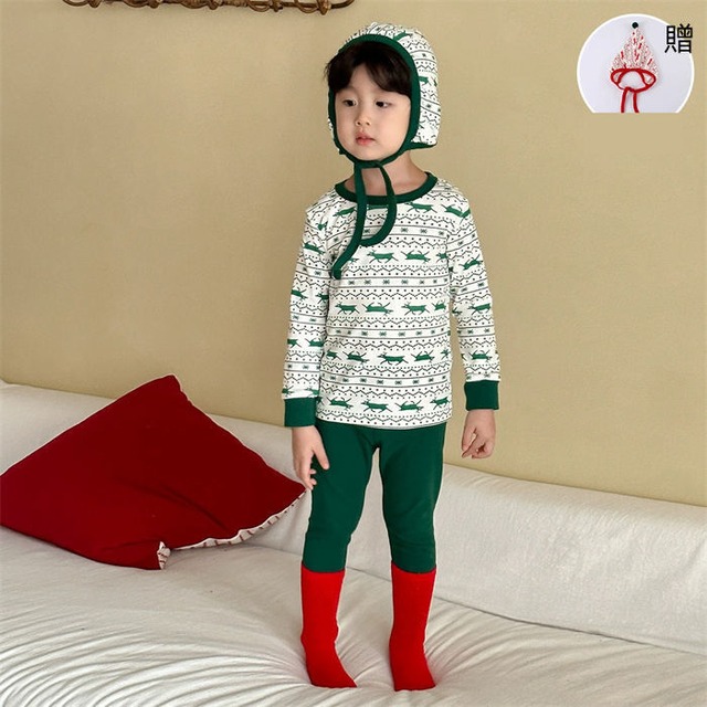 ルームウェア パジャマ 子供服 男の子 女の子 ベビー 2色 80-150㎝ 3点セット かわいい 秋冬 25zm2016
