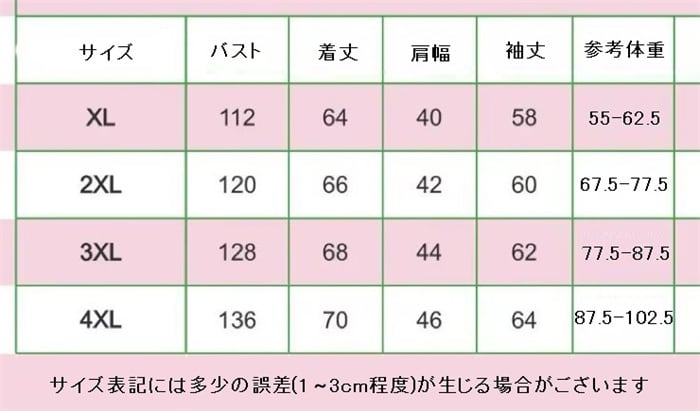 サイズ表の実寸法は商品によって1-3cm程度の誤差がある場合がございます。
