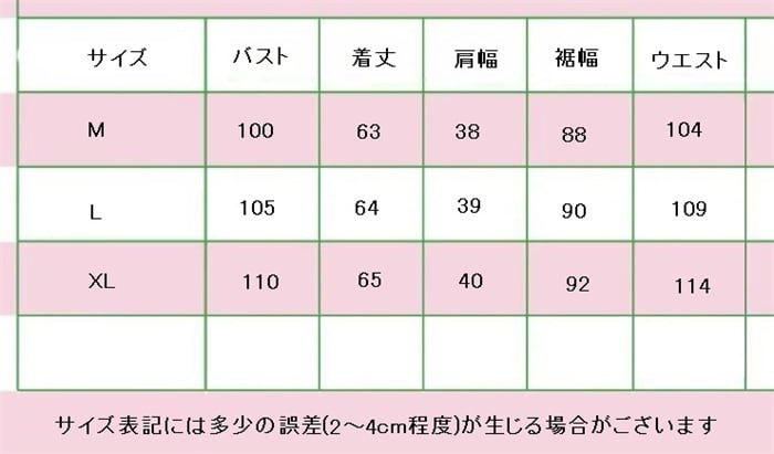サイズ表の実寸法は商品によって1-3cm程度の誤差がある場合がございます。