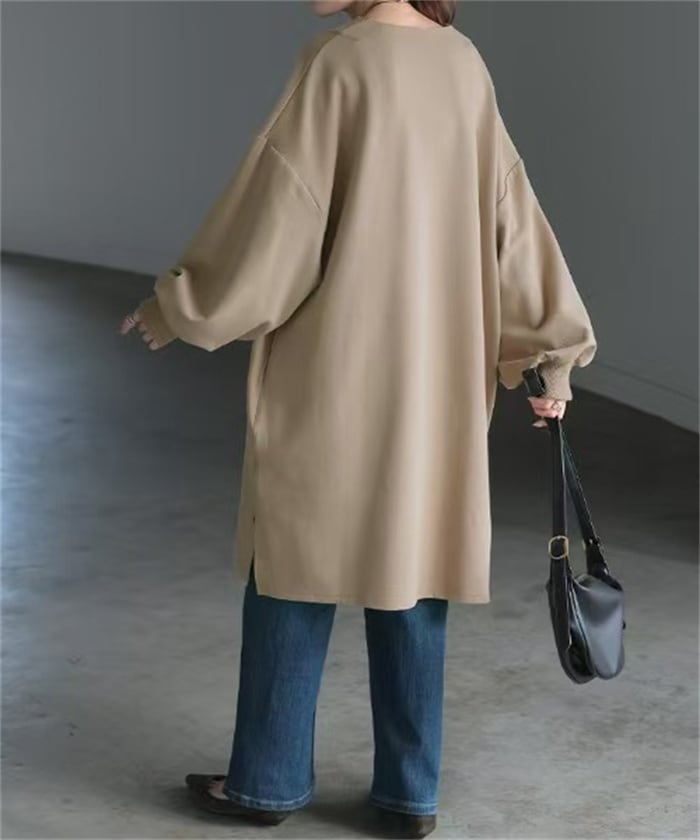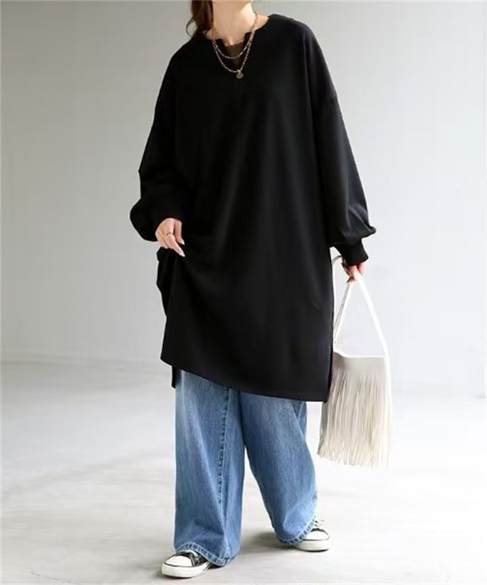 ★特徴:秋冬のコーディネートにぴったりのロング丈ワンピースが新登場!シンプルな無地デザインは、カジュアルからきれいめスタイルまで様々なシーンに大活躍します。Vネックと長袖仕様で、寒い季節でも暖かく、リラックスした着心地を実現しています。フリーサイズなので、多くの体型の方にフィットするのも魅力的です。
