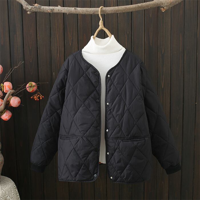 キルティングジャケット ノーカラー レディース 2色 XL-4XL 無地 中綿コート 秋冬 ゆったり アウター カジュアル 25zm2053