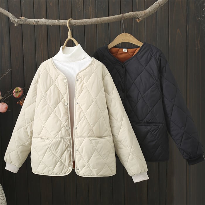 ■商品:キルティングジャケット ノーカラー レディース 2色 XL-4XL 無地 中綿コート 秋冬 ゆったり アウター カジュアル 韓国 ファッション コーデ おすすめ カジュアル きれいめ 大きいサイズ 人気 ゆったり 20代 30代 40代 50代