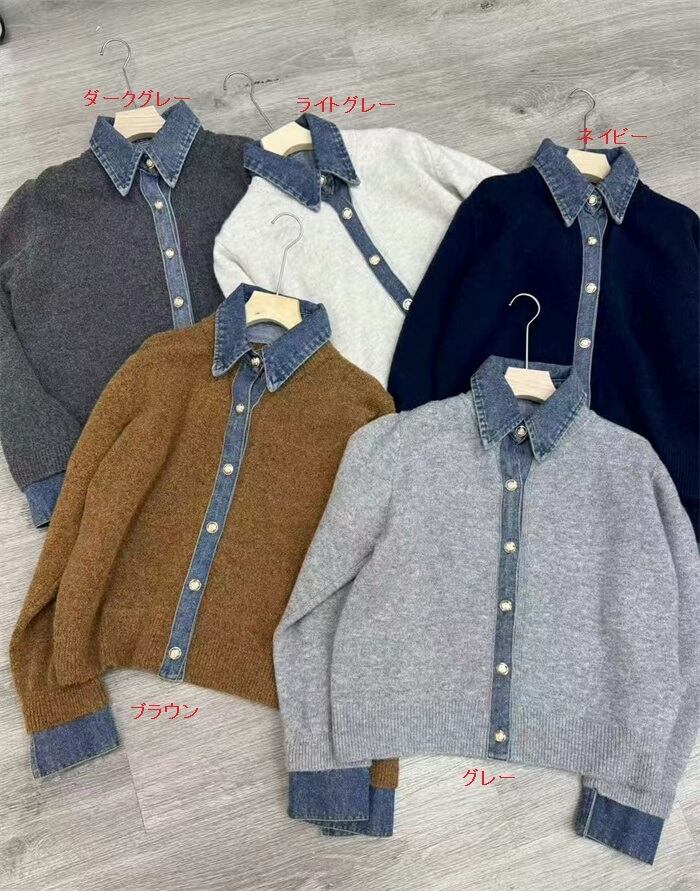 ■商品:ニットジャケット カーディガン デニム切り替え 長袖 レディース 5色 フリーサイズ ジャケット カジュアル 韓国 ファッション コーデ おすすめ カジュアル きれいめ 大きいサイズ 人気 ゆったり 20代 30代 40代 50代