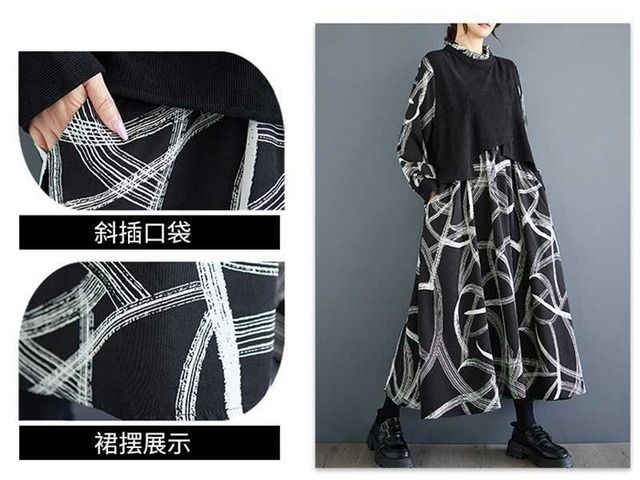 ★特徴:秋冬にぴったりの長袖ドッキングワンピースが新たに登場!Aラインのシルエットが女性らしさを引き立て、おしゃれなデザインが魅力的です。フリーサイズで、さまざまな体型の方にフィットし、心地よい着こなしを提供します。