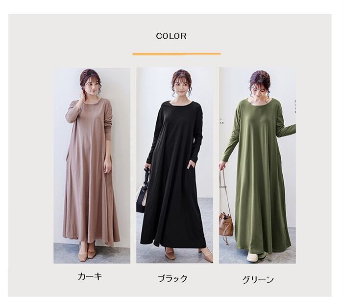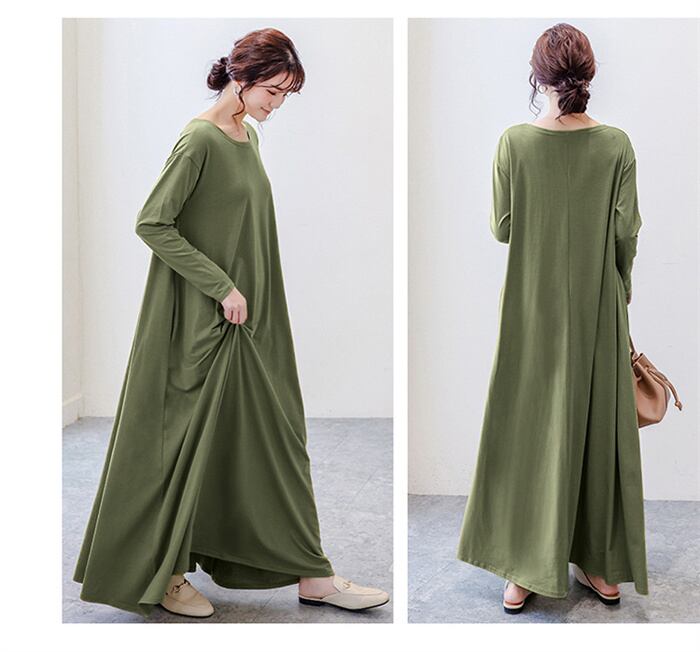 ワンピース 長袖 レディース 7色 M-XL ロングワンピース ゆったり おしゃれ マキシワンピース 25zm2064