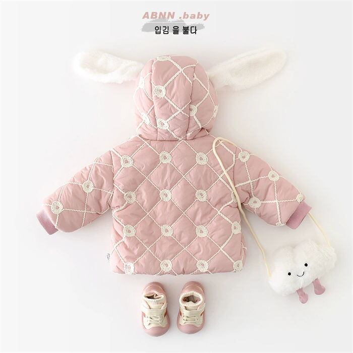 ベビー服 中綿ジャケット 女の子 ピンク 73-100㎝ 子供服 赤ちゃん 厚手 フード付き かわいい 秋冬 防寒 25zm2078