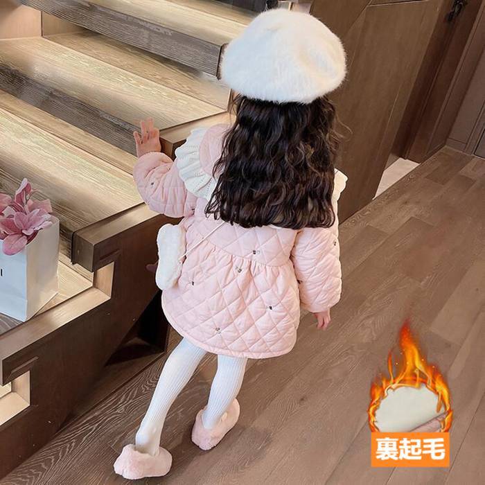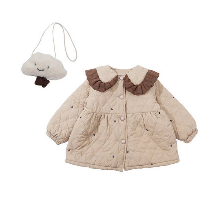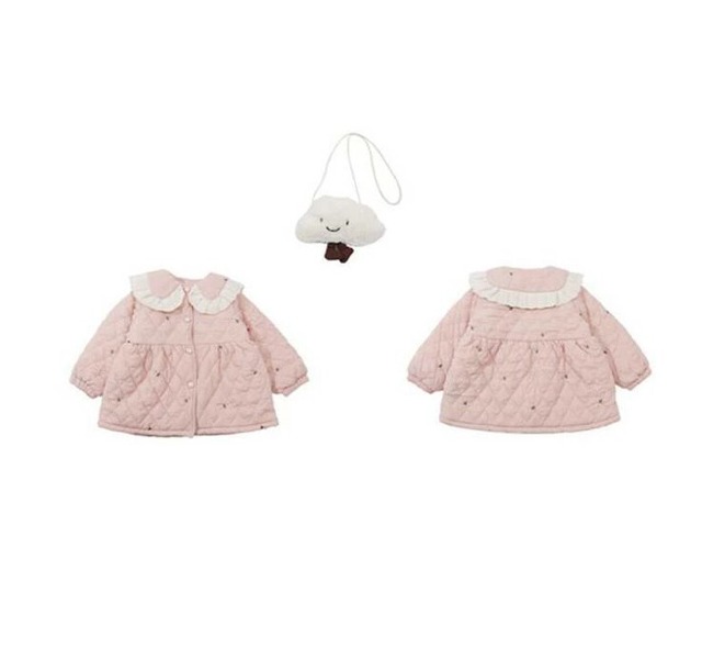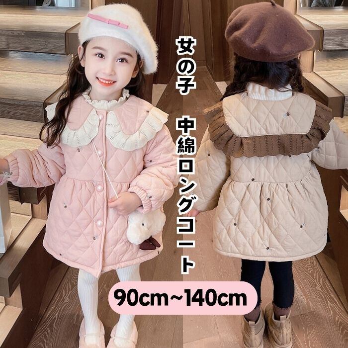 中綿コート キルティングコート アウター 子供用 女のコ 2色 90-140㎝ 裏起毛 防寒 秋冬 可愛い 25LT11