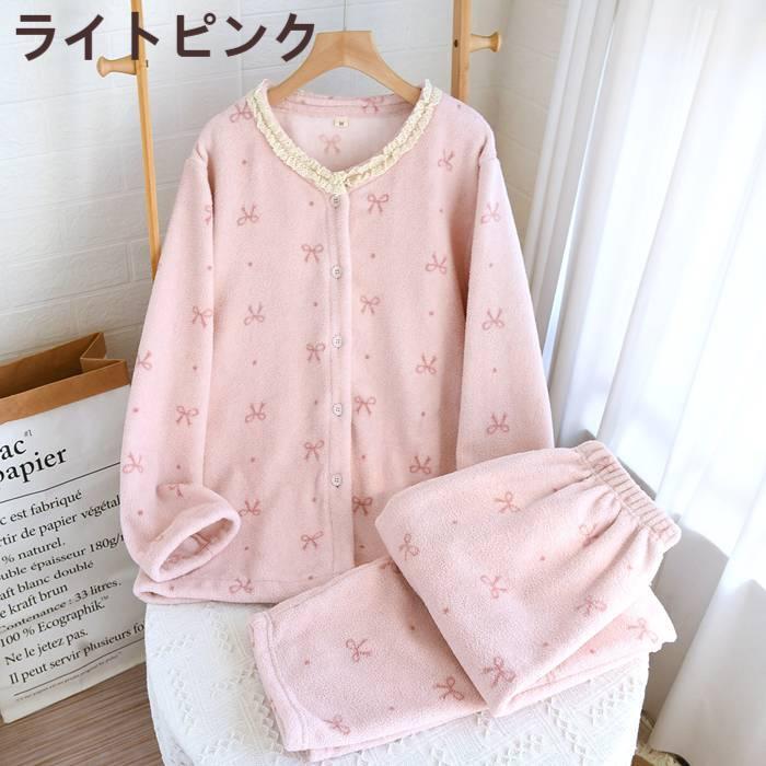 パジャマ 上下セット ルームウェア レディース 6色 M-XL 裏起毛 もこもこ ゆったり 秋冬 防寒 かわいい 25LT22