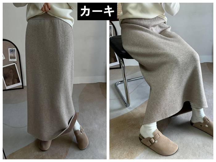 ■商品:ニットスカート ロングスカート 裏起毛 レディース 5色 フリーサイズ スリット オフィス 無地 大人 上品 秋冬 韓国 ファッション コーデ おすすめ カジュアル きれいめ 大きいサイズ 人気 ゆったり 20代 30代 40代 50代