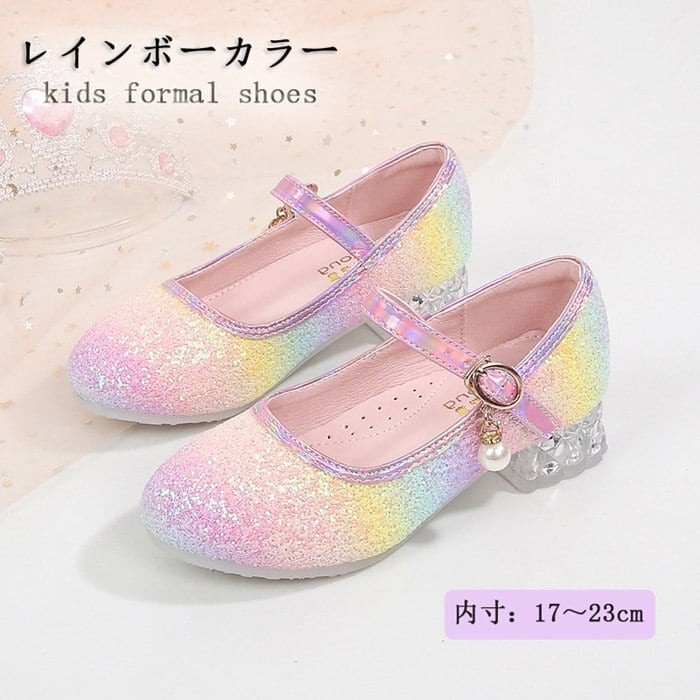 ★特徴:華やかなキラキラデザインが魅力のキッズシューズが登場です!フォーマルなシーンやダンス、バレエの衣装にもぴったりな一足で、お子様の特別な日を彩ります。サイズは17㎝から23㎝まで対応しており、成長するお子様にもフィットしやすいです。おしゃれでありながらも、履きやすさを考えた設計なので、長時間の使用でも快適にお過ごしいただけます。