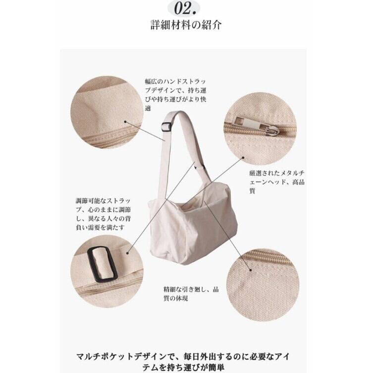 ★特徴:丈夫な帆布素材を使用しており、デイリー使いにぴったりです。軽量かつ収納力に優れた設計なので、必要なものをすっきりと持ち運ぶことができます。おしゃれで実用的なこのバッグは、あなたのワードローブに欠かせないアイテムとなることでしょう!