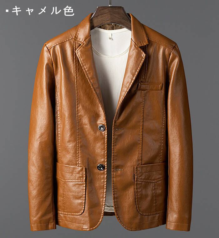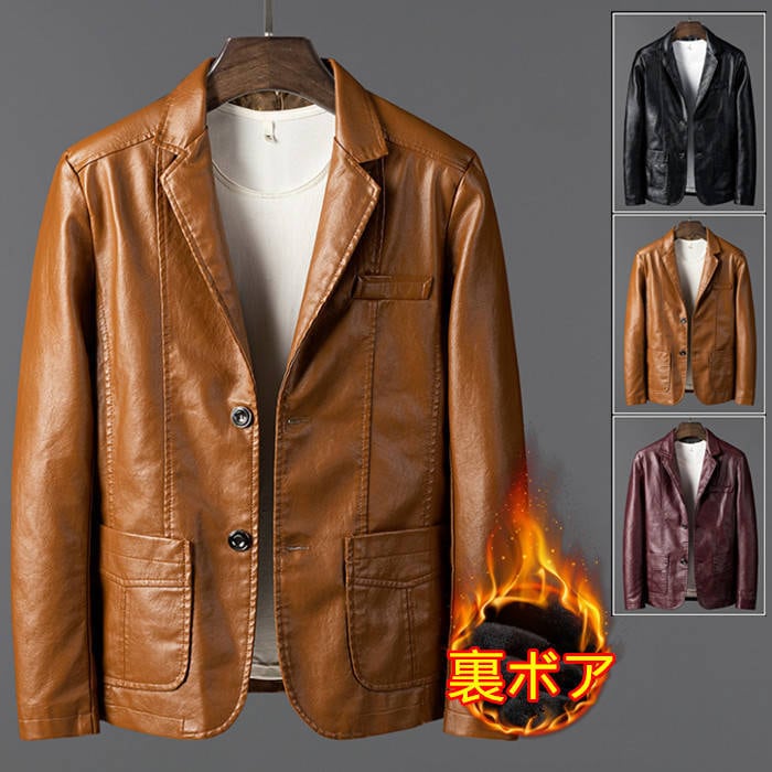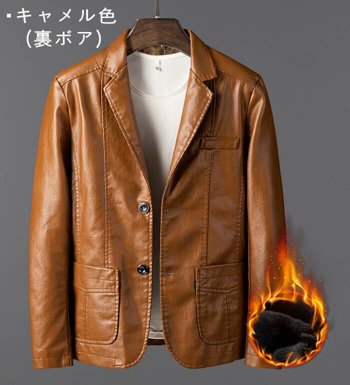 レザージャケット テーラードジャケット メンズ 3色 M-6XL 裏ボアあり/無し PUレザー カジュアル 無地 アウター 25LT116