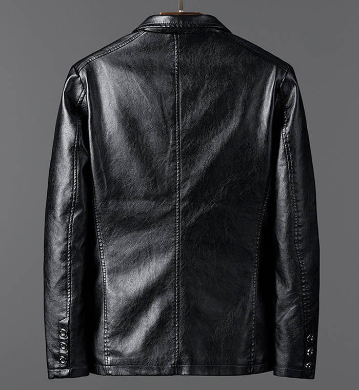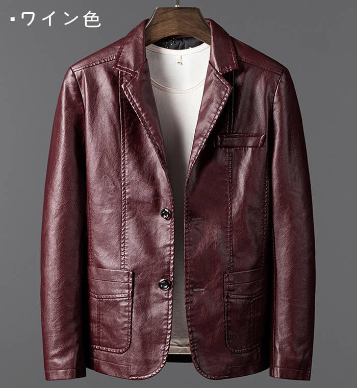 『高品質なPUレザーを使用したテーラードジャケットで、カジュアルスタイルを格上げします。』