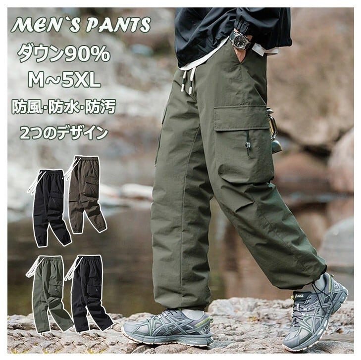 ■商品:ダウンパンツ ワークパンツ メンズ 2色 2type M-5XL 冬用 防寒 カーゴパンツ アウトドア 韓国 ファッション コーデ おすすめ カジュアル きれいめ 大きいサイズ 人気 ゆったり 20代 30代 40代 50代