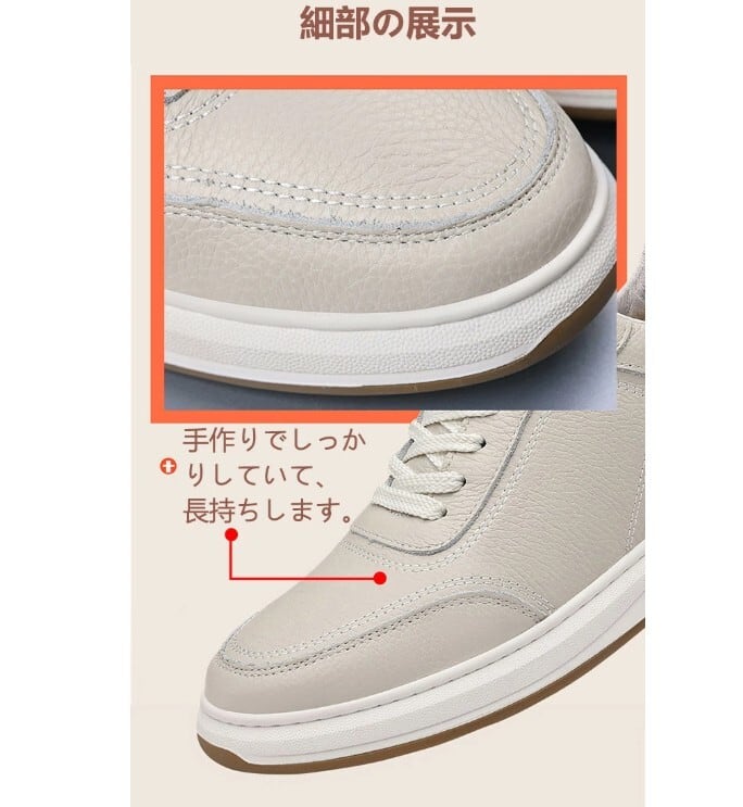 このスニーカーは、裏ボア仕様で寒い季節でも快適な履き心地を実現しました。レザーの高級感とカジュアルなデザインが融合しており、3色から選べるため、あなたのスタイルにぴったりの一足が見つかります。23㎝から27.5㎝まで対応しているので、男性の様々な足のサイズにフィット!普段使いからちょっとしたお出かけまで、幅広く活躍する頼れるアイテムです。