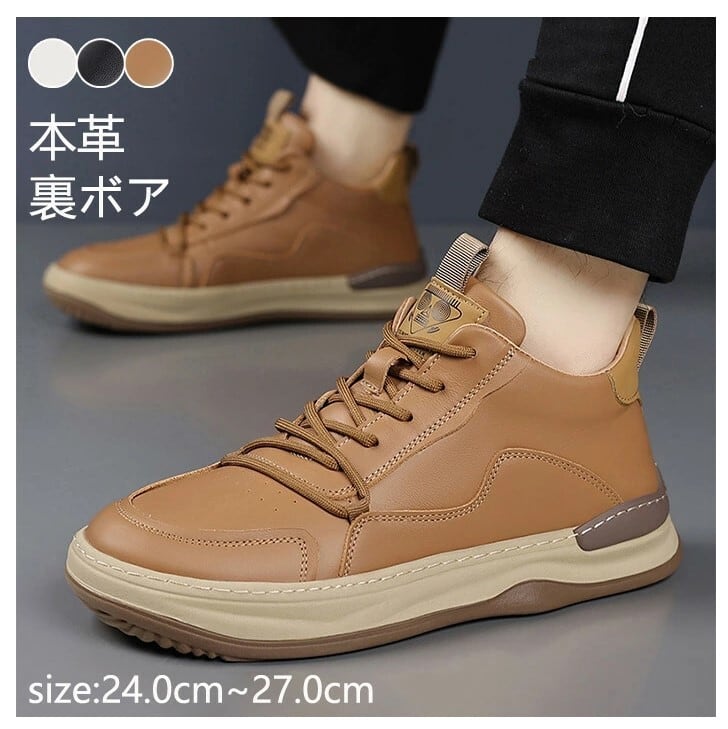 スニーカー 裏ボア レザースニーカー メンズ 3色 24-27㎝ 革靴 冬 レースアップ カジュアルシューズ 25LT123