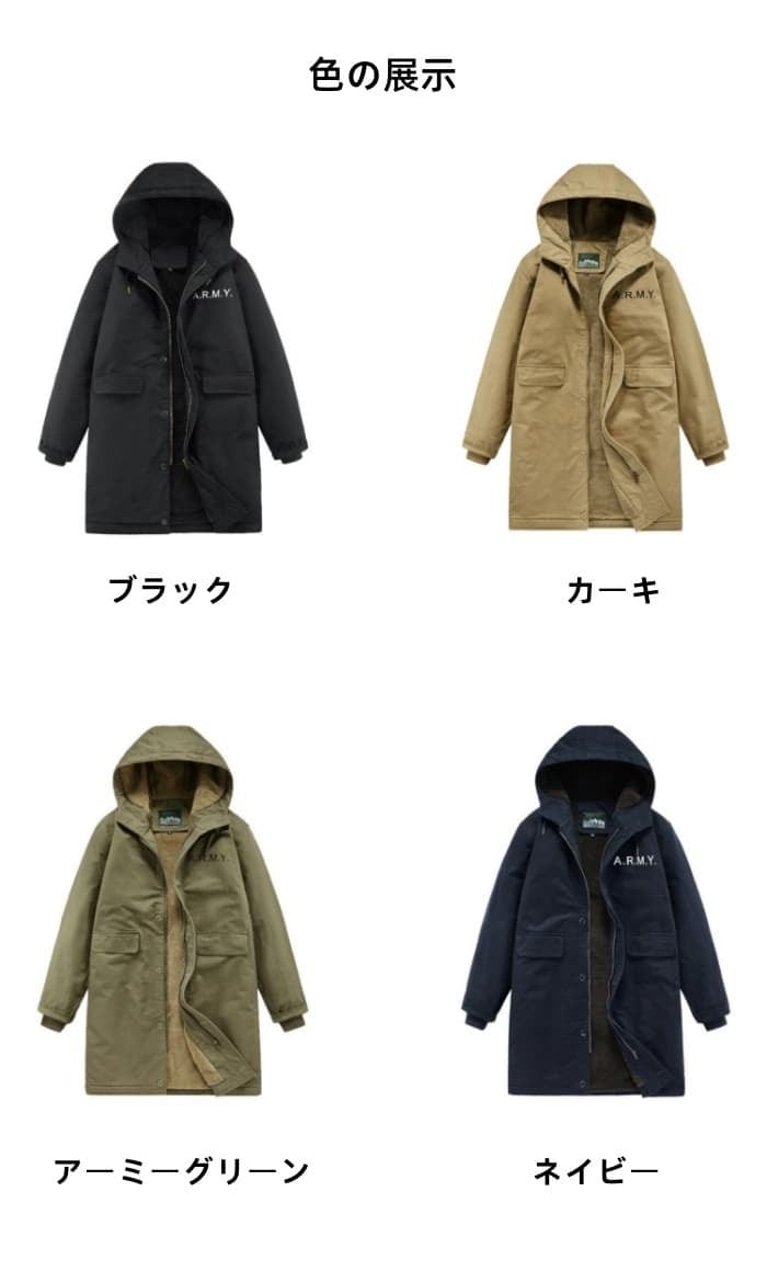 ■商品: モッズコート ミリタリーコート 裏ボア メンズ 4色 M-6XL フード付き ロングコート アメカジ カジュアルコート 韓国 ファッション コーデ おすすめ カジュアル きれいめ 大きいサイズ 人気 ゆったり 20代 30代 40代 50代