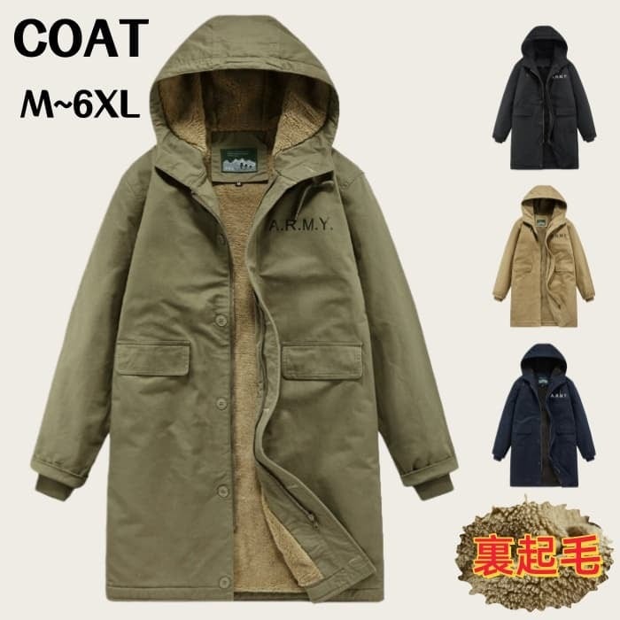 モッズコート ミリタリーコート 裏ボア メンズ 4色 M-6XL フード付き ロングコート アメカジ カジュアルコート 25LT124