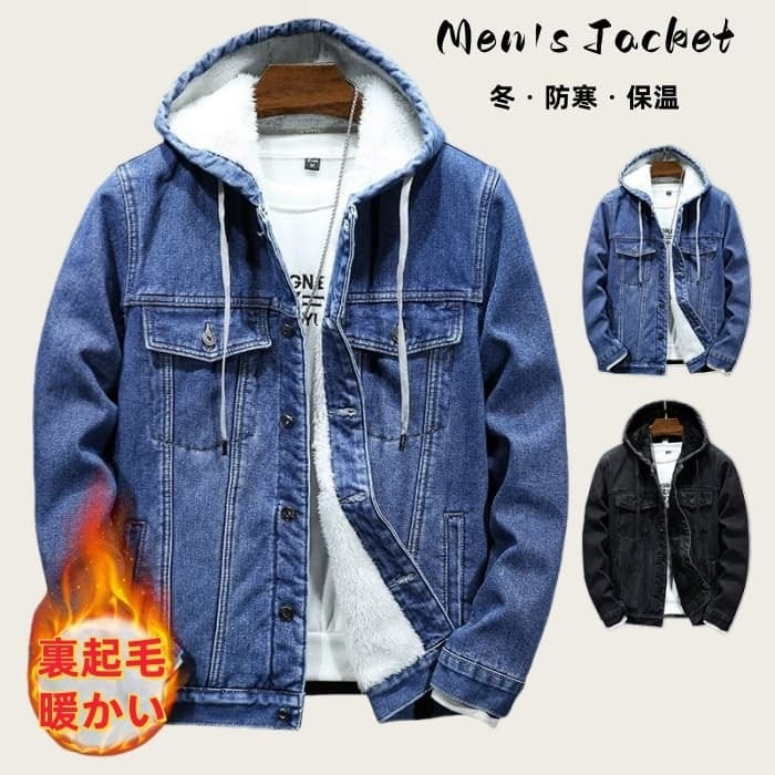 デニムジャケット フード付き 裏ボア メンズ 2色 M-4XL ジージャン 厚手 アメカジ カジュアル アウター 25LT125