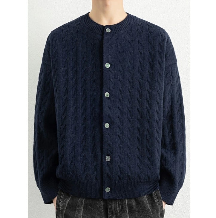 ニットカーディガン 編み込み セーター メンズ 6色 M-3XL 無地 秋冬 ニット アウター 25LT133