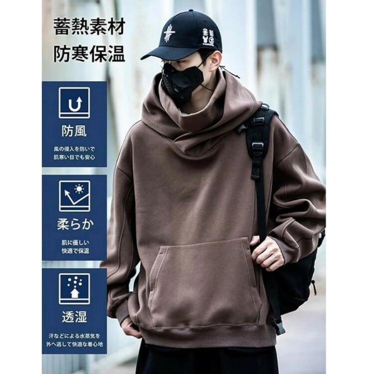 プルオーバーパーカー ボリュームネック 男女兼用 3色 M-3XL カジュアル パーカー スウェット 25LT141