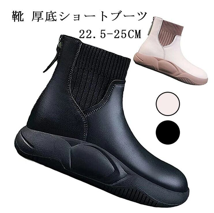 サイドゴアブーツ ショートブーツ 厚底 レディース 2色 22.5-25㎝ 裏起毛あり/無 厚底ブーツ カジュアル 25LT143